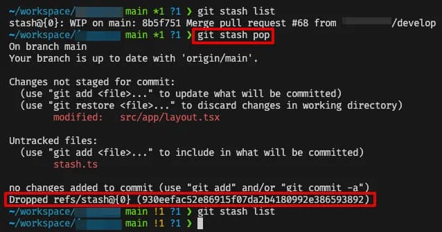- git stash pop